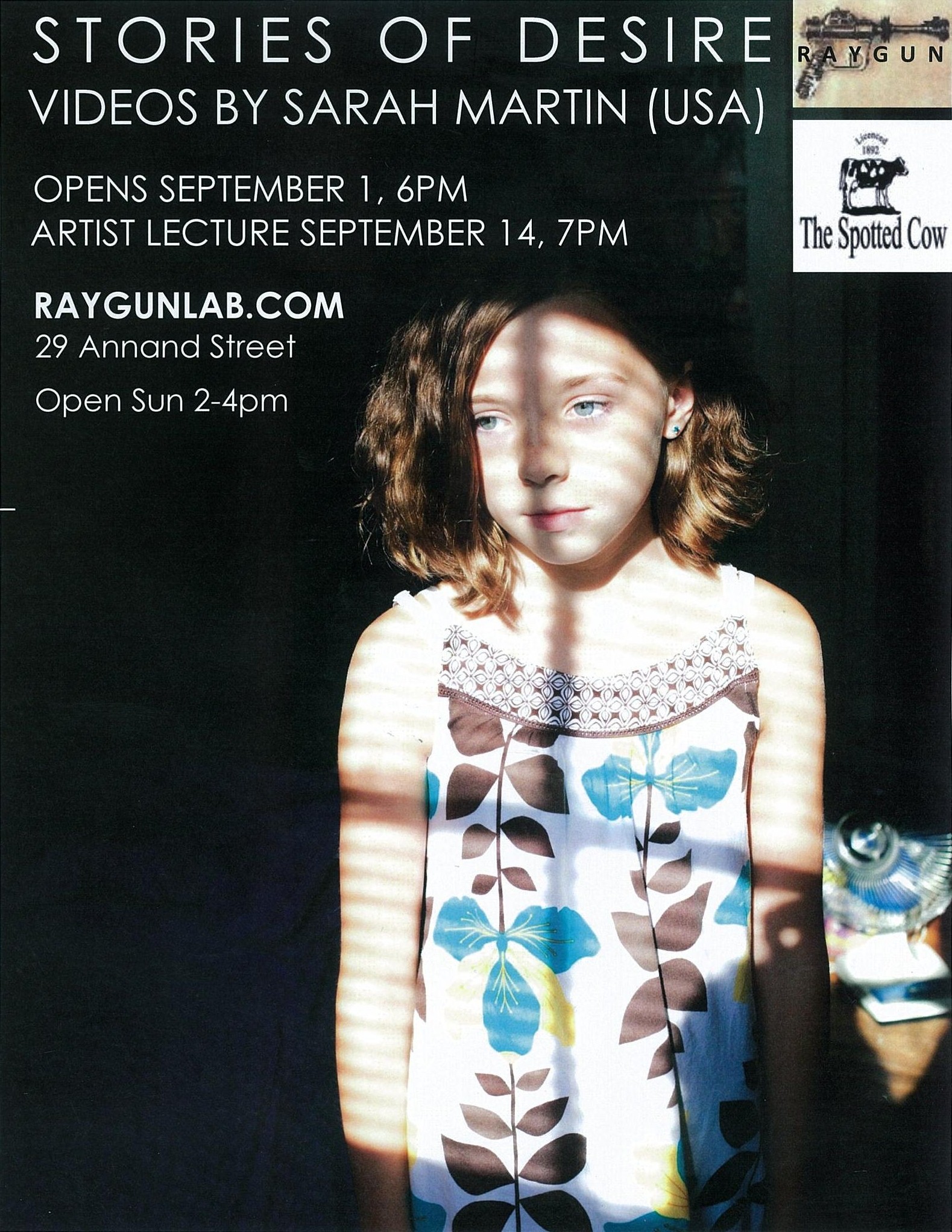 RAYGUN’s next show ‘Stories of Desire’ is a series of videos by American photographer and filmmaker Sarah Martin. The Show opens on Thursday, September 1st at 6pm (29 Annand Street, Toowoomba) and Sarah will give a lecture on her work via skype on Wednesday September 14th at 7pm.