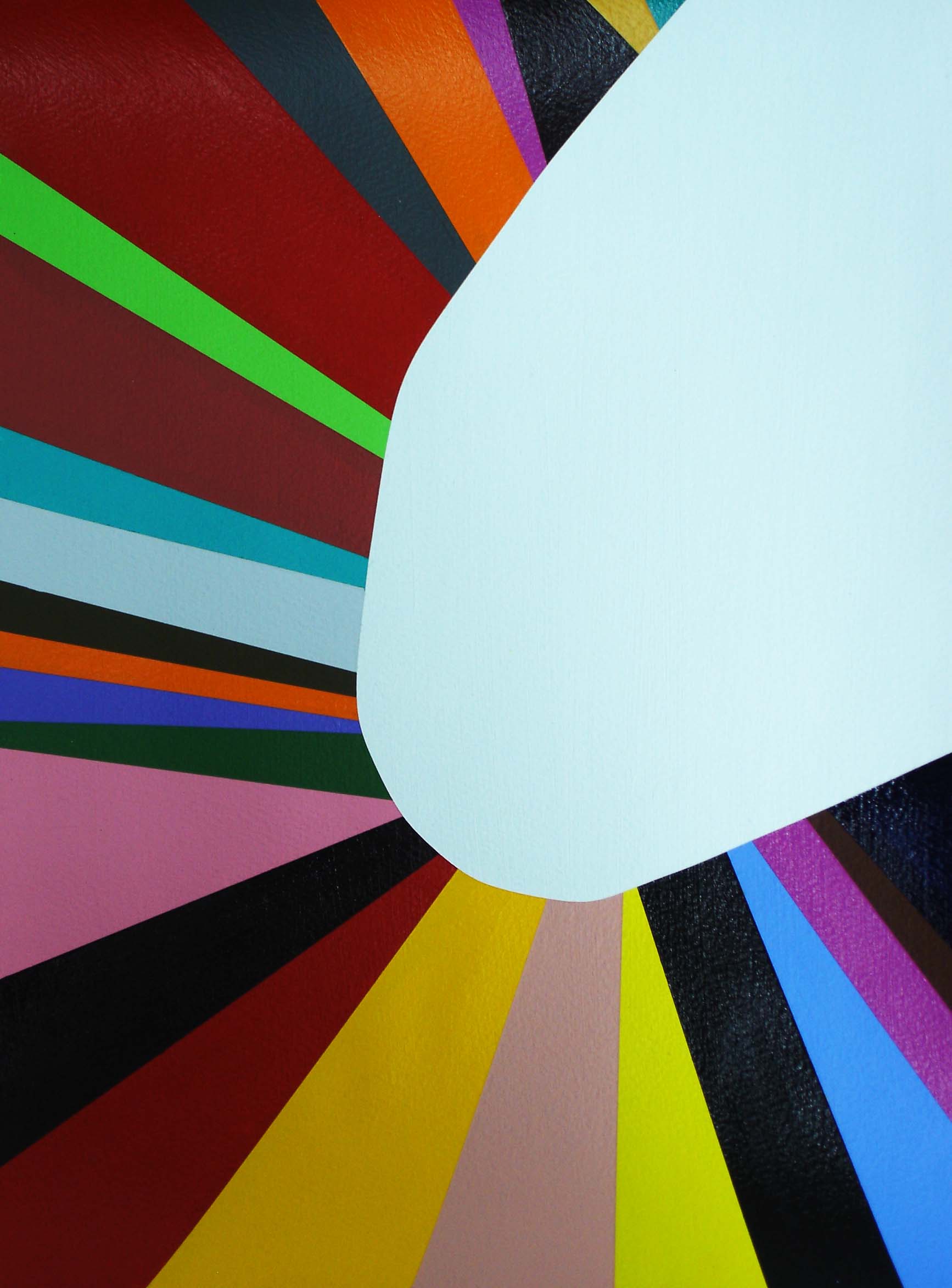 Through the very basic elements of line, colour, form and surface the work investigates how the double exposure between what the image looks like and how it is constructed and the displacement of space can lead to new spatial experiences. Thus the work creates a kind of ‘play’ between form and void – for example the form of the gap in one art piece constitutes the actual shape of the next one. This method of working further investigates the connections between formal and informal methodologies of abstraction and thus the work constantly examines the mapping and reconstruction of imagined urban terrains, geometry, colour, representation and fractural compositions.