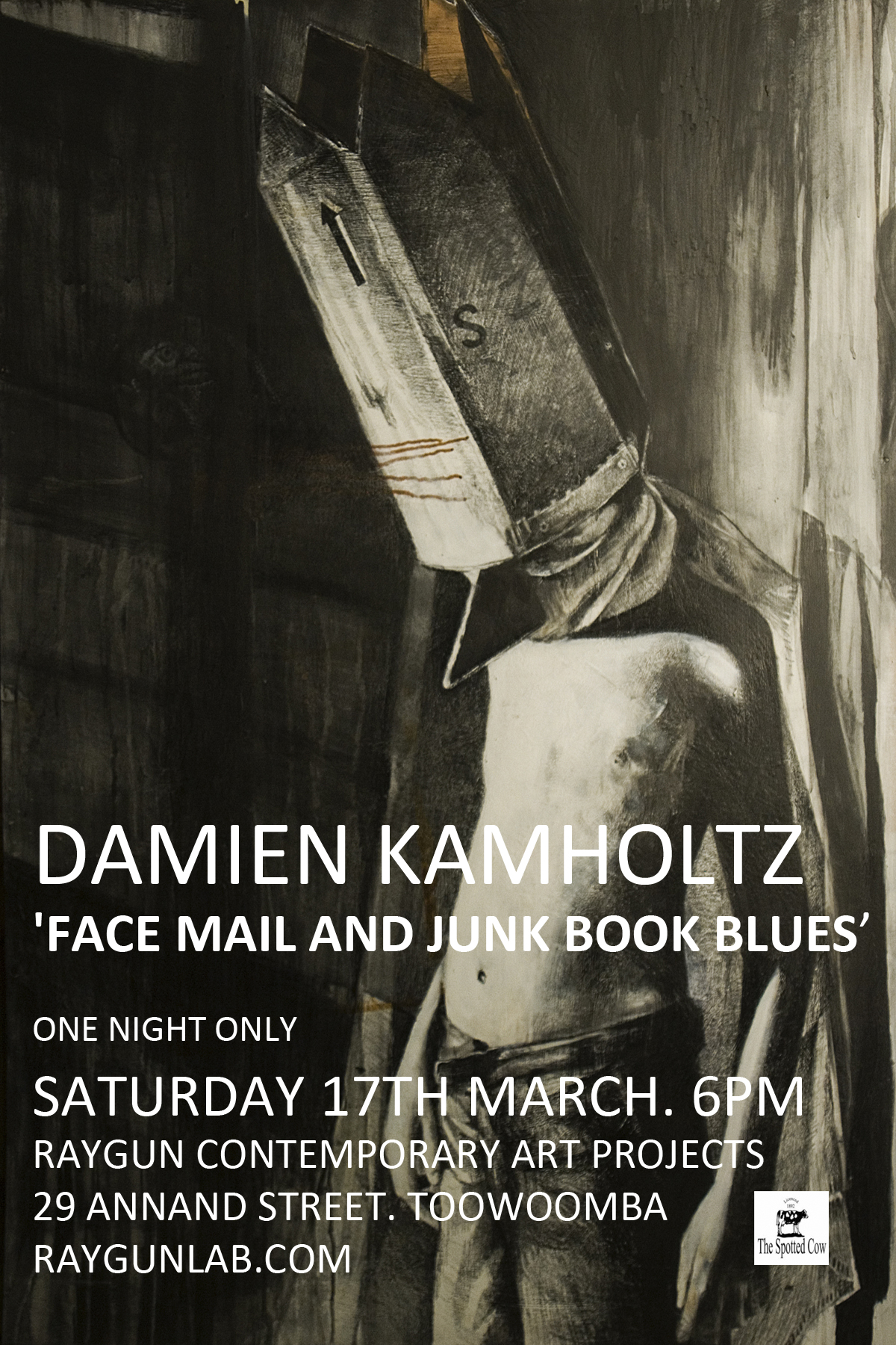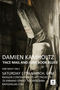 ‘Face Mail and Junk Book Blues’ opens on Saturday night at 6pm. Exciting new video work, drawings and paintings by Damien Kamholtz will be shown at RAYGUN (29 Annand Street). Come down for a drink and meet Damien.