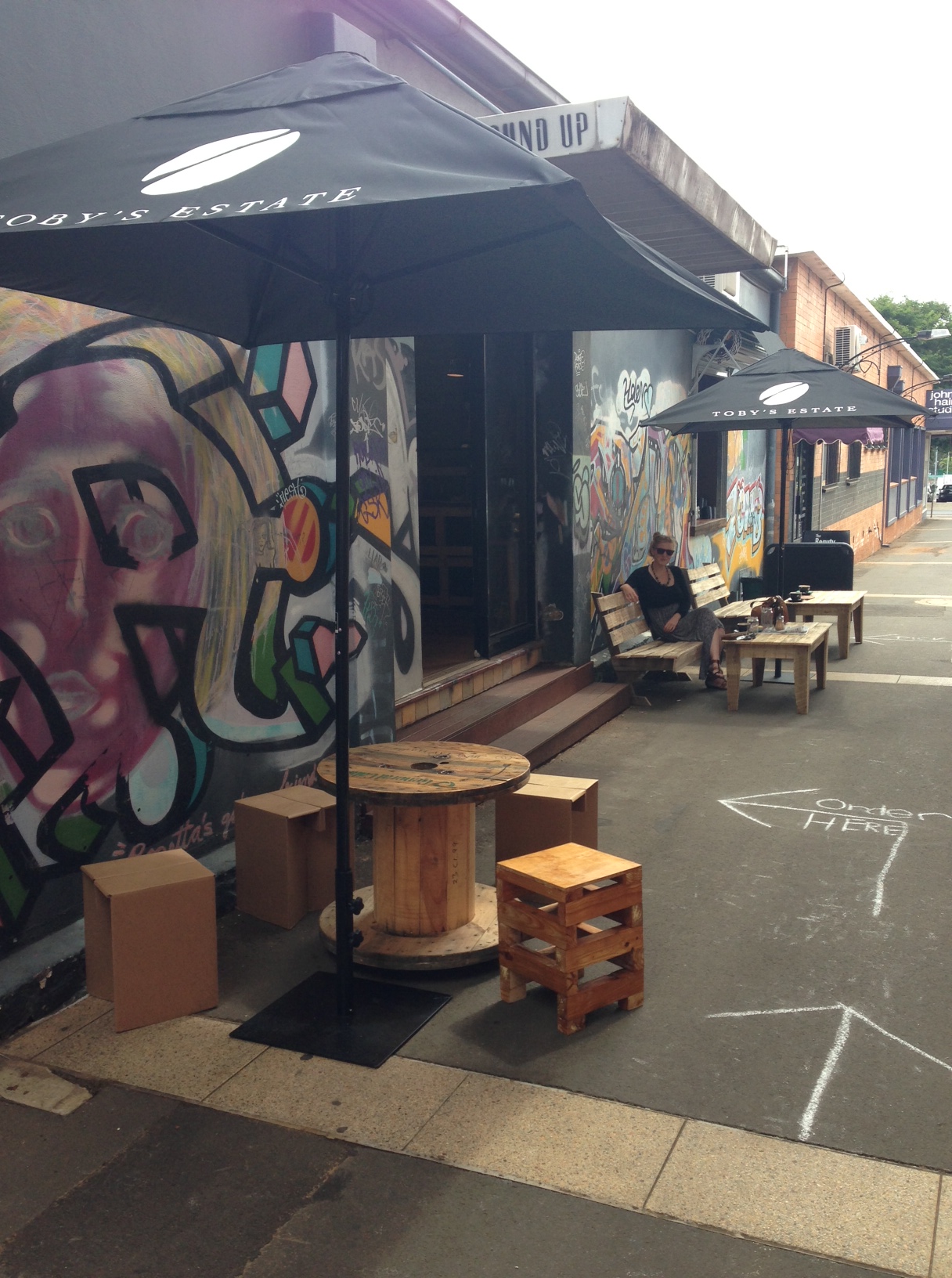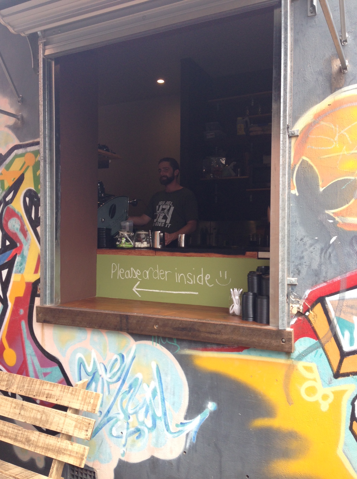 is in the alley between Ruthven and Duggan Streets. So close to RAYGUN and our studios. Seriously good coffee, and the Brownie is amazing. Check it out.