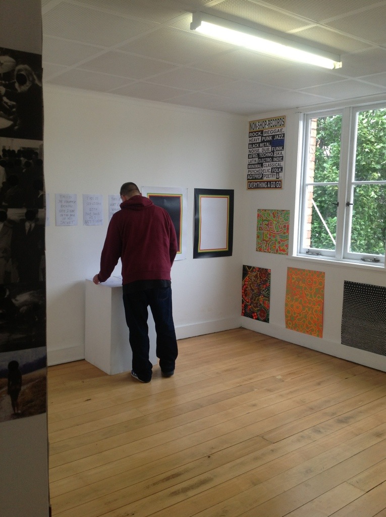 Last night was Thorgej’s opening night in the RAYGUN space and he was kept busy with lots of new people to meet and conversations. Kyle Jenkins played some fantastic songs while Thorgej did a video and sound recording. Here are some images of the works after install and some music clips and photos from the night are on their way.