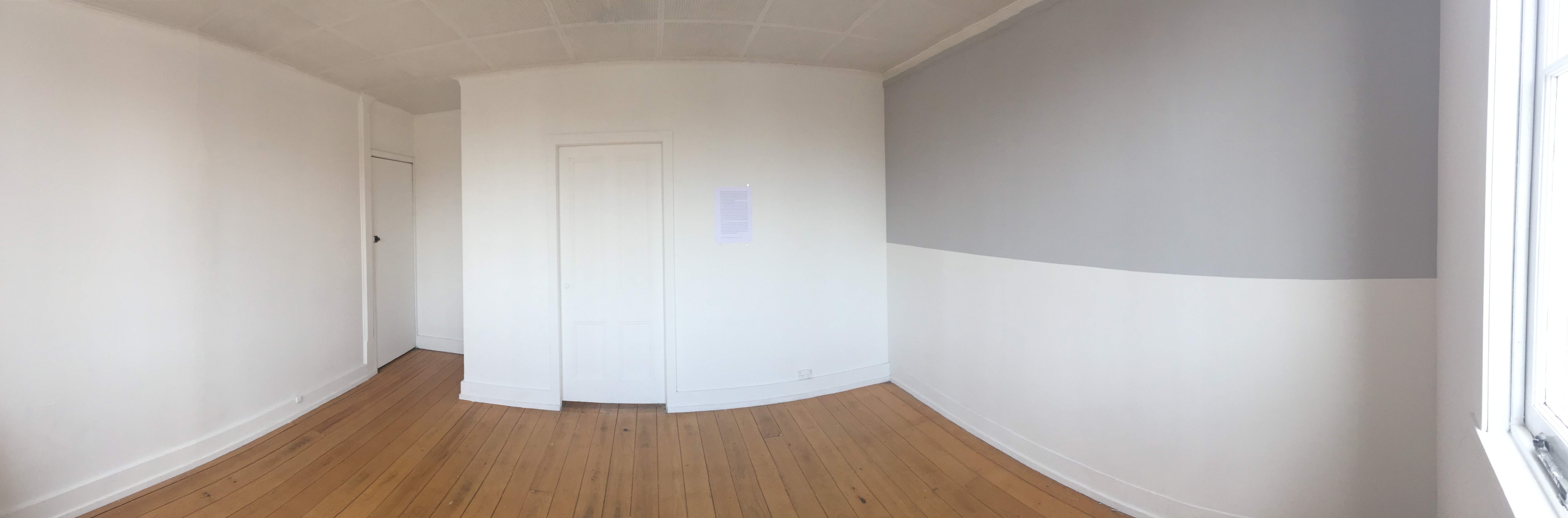 Within the show at RAYGUN Projects in Toowoomba, Australia, Painter designer and curator Tarn McLean looks to project the critical essence of his life’s work as a Monochromatic Painter. The master of gentlemanly discretion, Mosset offers his work as a springboard for visual discussion on ideas of collaboration and possibilities for painting. The show exists of a two-toned grey and white monochromatic wall painting within the project space. McLean has chosen to illuminate her researched perception of his generosity and masterly contribution towards painting through the addition of French writer Catherine Perrrets ‘story’ on his Swiss National Library commission in 2000. Within the project space the short essay is presented as an A4 print out, and placed on the gallery wall. In 2014 through 2015, Mosset agreed to contribute to McLean’s PhD painting research through a series of interview questions, a group show in Sydney, a wall painting at her co-directed project space REFLEX, Toowoomba, and finally through the RAYGUN installation.