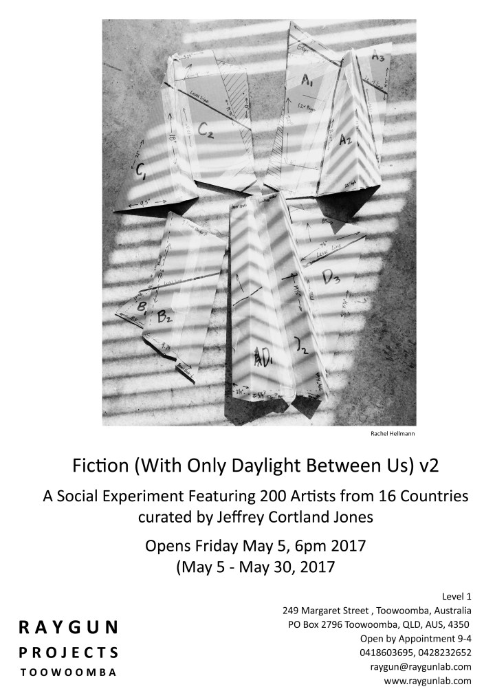 Fiction (With Only Daylight Between Us) . v2 A social experiment featuring 200 artists from 16 countries, curated by Jeffrey Cortland Jones. Dave Ackels . OhioLuke Ahern . Ohio Steven Alexander . Pennsylvania Matthew Allen . Netherlands Ky Anderson . New York Rosaire Appel .… Read More